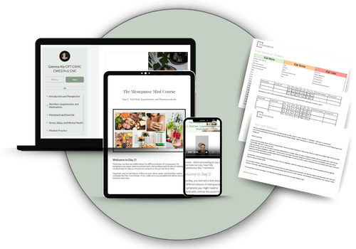 Evidence based education and tools to support you through some of the most common menopause symptoms. Think unexplained weight gain, muscle and bone loss/weakness, hot flushes, anxiety, and more.
